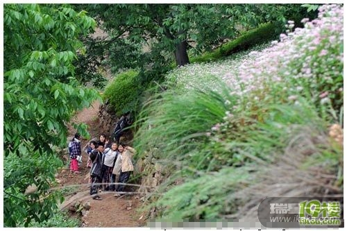 孩子们放学走在回家的路上。路边是荞麦花,核桃树