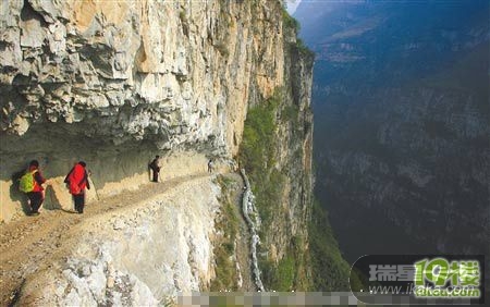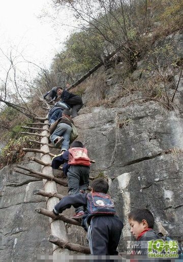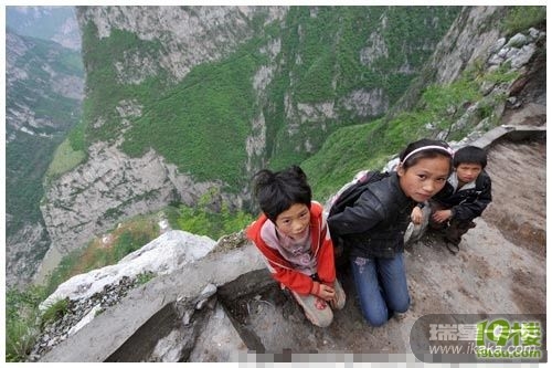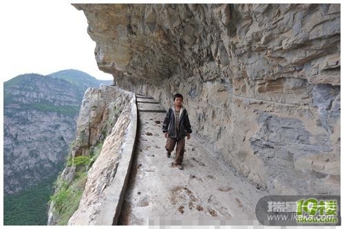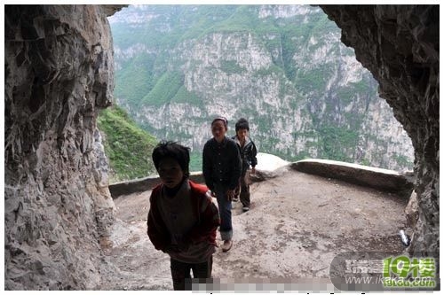 这三个孩子,其中两个是孤儿,上学的必经之路就是在悬崖上开凿的“之”字路