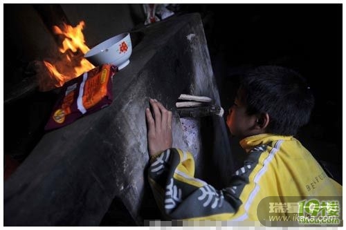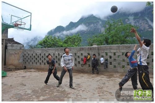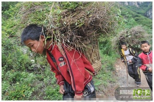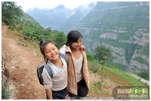 上学的路走一段就要休息一会(坐在悬崖边),一般上学需要走2个多小时。