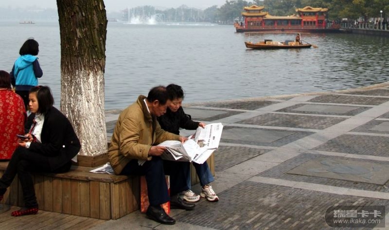 春天,在西湖边,湖滨一公园,阳光明媚,游客如云。在绿色的柳丝下,坐着一对老人,静静地读着报纸,成了西湖边一道美丽的风景线。老俩口都已退休,天气好的时侯,都会来西湖边晒晒太阳,读读报纸,听听越剧。
