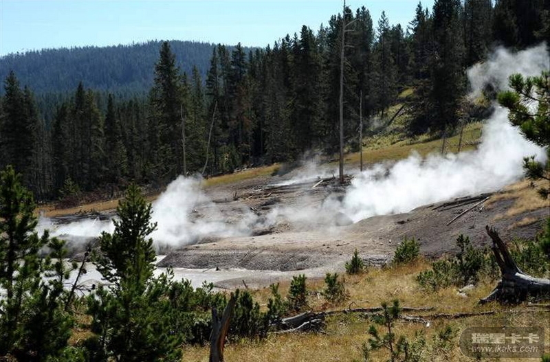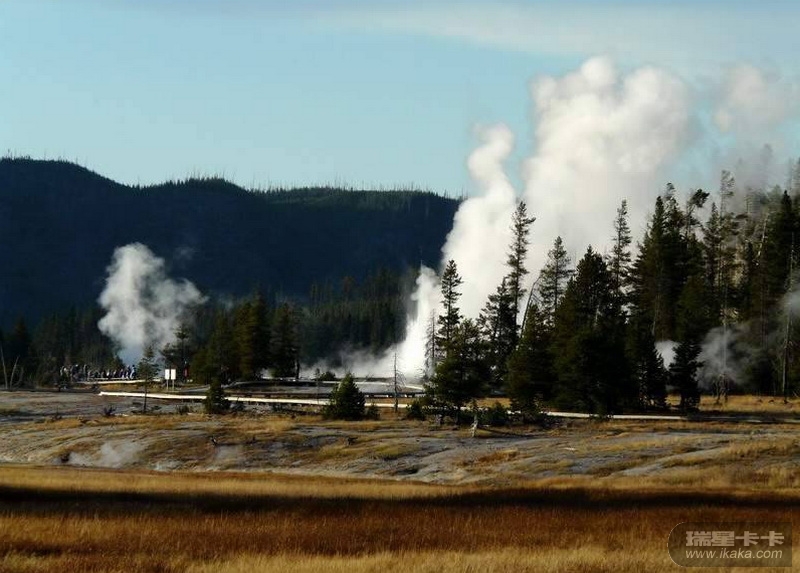 平方公里,公园分五个区:西北的马默斯温泉区以石灰石台阶为主,故也称热台阶区;东北为罗斯福区,仍保留着老西部景观;中间为峡谷区,可观赏黄石大峡谷和瀑布;东南为黄石湖区,主要是湖光山色;西及西南为间歇喷泉区,遍布间歇喷泉、温泉、蒸气、热水潭、泥地和喷气孔。这些地热奇观是世界上最大的活火山存在的证据。黄石公园还是个野生动物保护区,栖息着北美水野牛、灰狼、棕熊、驼鹿、麋鹿、巨角岩羊、羚羊、羚牛等野生动物。黄石公园以熊为其象征,园内大约有