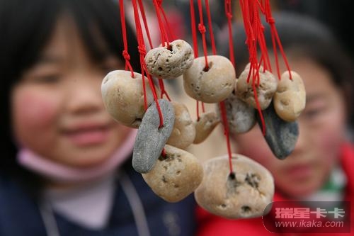 2月12日,在襄阳市汉江鱼梁洲举行的“穿天节”上,孩子们在观赏带孔窍的“穿天石”。当日,湖北襄阳第七届“穿天节”开幕。“穿天节”是襄阳特有的节日,源于古代襄阳才子郑交甫在万山偶遇汉水神女,赠佩珠定情的美丽传说,时间定在每年的农历正月二十一。每到这一天,襄阳的百姓会相约汉江边,在沙滩上捡拾汉江中游特有的带孔石头,用丝线穿起,佩戴在头上和身上,以祈求吉祥幸福。如今“穿天节”已演变为市民迎春郊游、交友、祈福的大型户外活动。新华社发(龚波 摄)