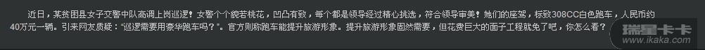 贫困县领导精选女交警 配豪华跑车巡街