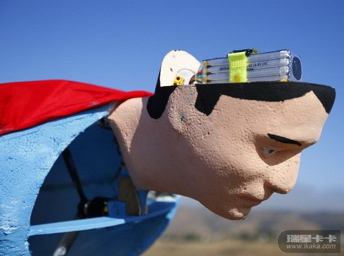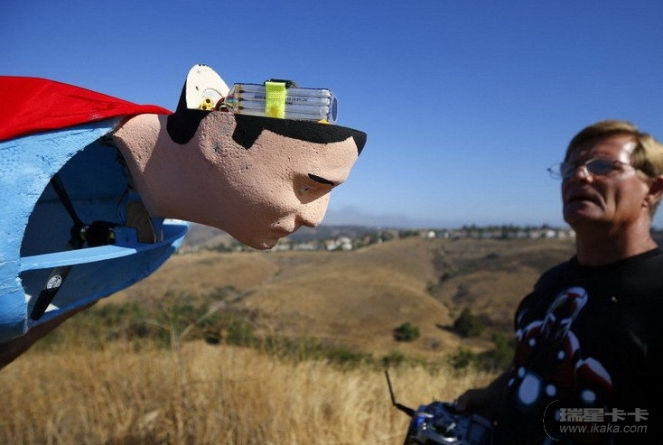 这种无线遥控超人飞机初次起飞,令加州当地居民感到十分困惑。采用泡沫塑料制造的超人飞机同时装配着螺旋桨和超人特有的披肩,能够在楼顶高度飞行,甚至可以在峡谷上空滑行。设计者是奥特-迪费巴彻(Otto Dieffenbach),商业合作方是埃德-汉利(Ed Hanley),他们制造了一款无线遥控飞机,兼具超人外型特征。