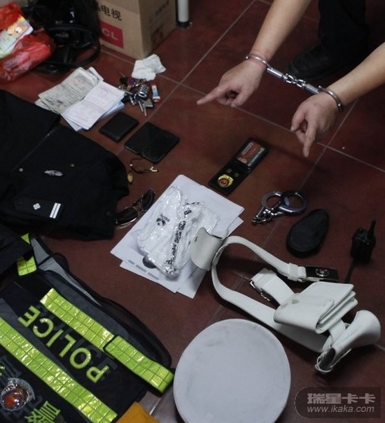 9月27日,西安市西关派出所,男子高某冒充交警敲诈电动车司机被抓获。高某近1.9米的个头,浓眉大眼,身着xxxxxx,大檐帽、白手套,斜挎白色的交警专用皮带,肩膀上还是一杠三花,一副仪表堂堂的小伙子,谁知道竟是个假交警。办案民警从他的摩托车后备箱起获xxx、白手套、对讲机、反光背心等,还有若干空白罚单。