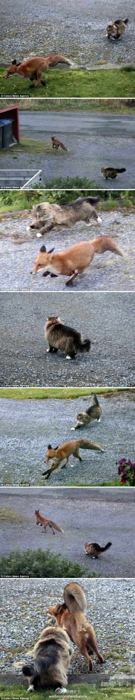 一天早上,在挪威北部,一只狐狸来到一户人家的外面,想“伺机作案”。让狐狸没有想到的是,这户人家养的森林猫利昂一看到它,就像一只下山的美洲狮,闪电一样向它猛扑过来。狐狸见状,撒腿就跑,兜起了圈子,想摆脱掉利昂的追击。怎奈利昂太厉害了,狐狸只好悻悻而去。