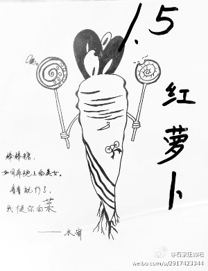 “在这个夏天井盖能当饼铛使的城市,我能给你的清凉不会逊于棒冰”——冬瓜。石家庄煤机街菜市场内一摊点,每个菜品都附有可爱的小广告。作者是摊主在上大一包装设计专业的孩子,有木有很有爱!!!