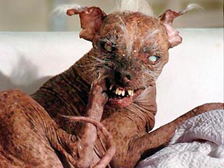萨姆在2005年可谓出尽风头,它的照片几乎被世界上所有知名媒体刊登。今年,萨姆在世界丑狗大赛上连续第三年夺冠,成为名副其实的一代 “丑狗之王”。许多看过萨姆照片的人都表示,它简直是丑到人们无法想像的地步!但可惜的是,在2005年萨姆也走完了自己的生命之路,11月,一代狗王因心力衰竭而被主人(美国人)在加利福尼亚实施了安乐死。
