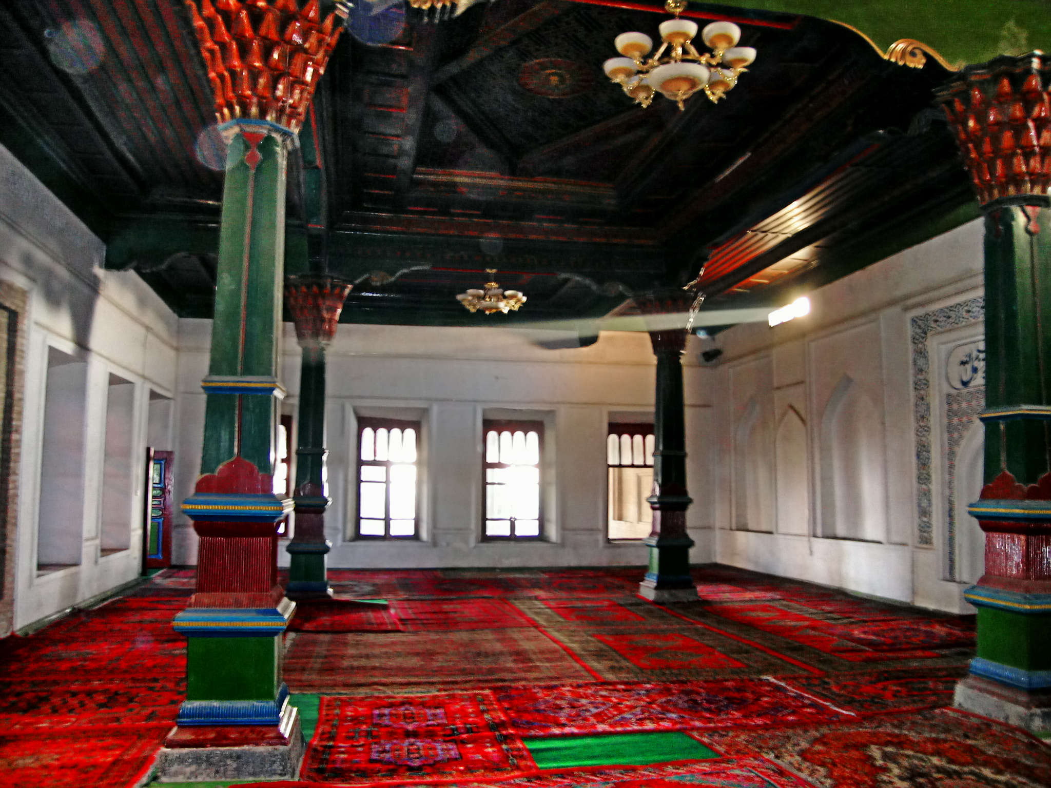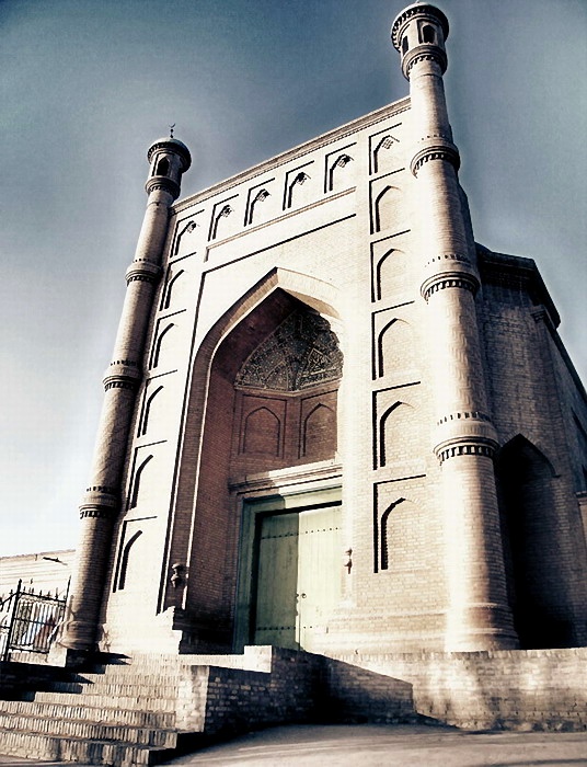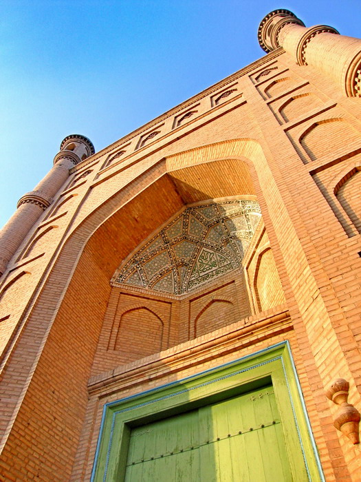 库车大寺。新疆第二大清真寺,仅次于喀什艾提尕尔,伊斯兰曾高度禁止绘画,建筑中很少有绘图,但是他们创造了无限图案被广泛应用于民族建筑中。