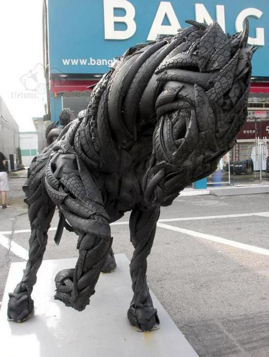 通常汽车轮胎,废弃了,于是我们就扔了……还能拿来做什么呢?看了这组图之后,不得不惊叹:这真是超级牛人的天才创意!请大家欣赏轮胎打造的铠甲和战马!