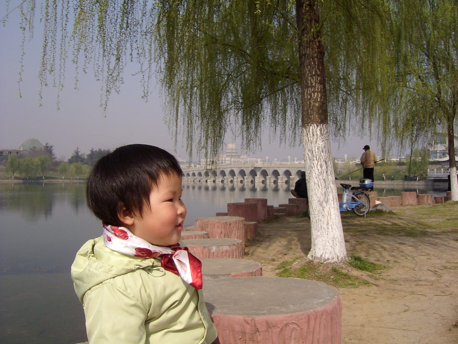 女儿当然很象我了!右边不是一只狗狗是一个水泥柱子!