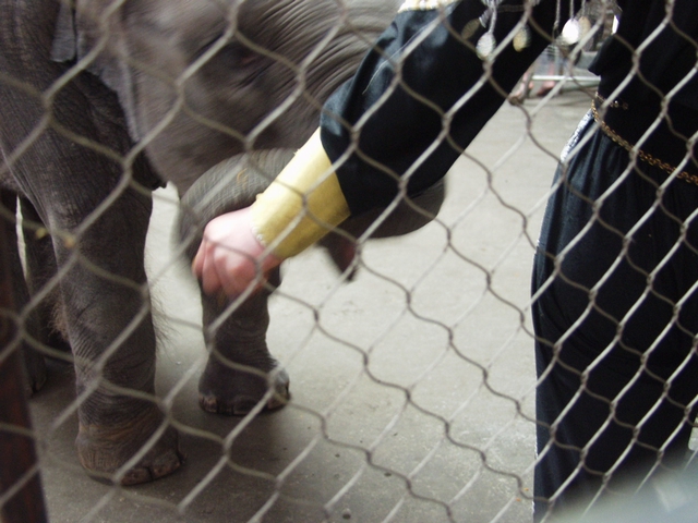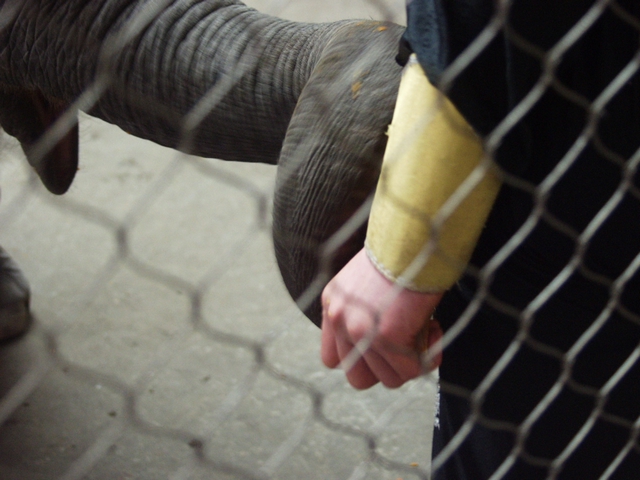 小饲养员逗小象,攥着南瓜就是不松手