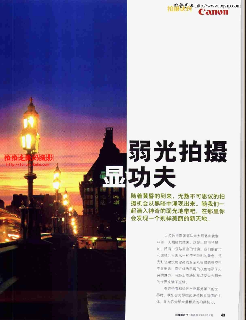 摘要:随着黄昏的到来.无数不可思议的拍摄机会从黑暗中涌现出来。随我们一起潜入神奇的弱光地带吧.在那里你会发现一个别样美丽的新天地。(编者)