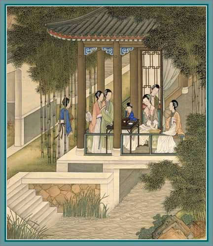 九月 琼台赏月 描绘中秋之夜, 贵妇们聚集高台,吟诗赏月的情景。