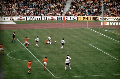 1966年,第八届世界杯在英格兰举行,东道主英格兰队最终夺冠,历史上首次捧起世界杯。在本届大赛中,来自亚洲的朝鲜队一鸣惊人,他们以1比0击败意大利闯入8强,创造了世界杯历史上最大的冷门之一。由于朝鲜队队员身材瘦小,且球衣颜色为红色,当地球迷给他们起了个“红蚊子”的绰号。图为在1比0击败意大利的比赛中,朝鲜队的朴斗一(左)攻入致胜球瞬间。
