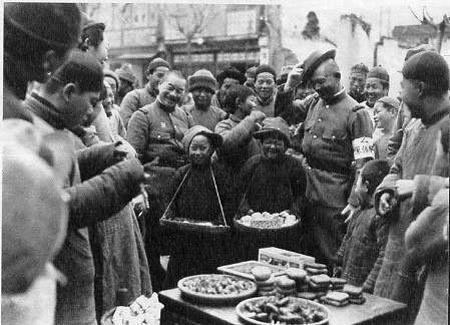 > >> > > 1937年12月15日,南京中山北路东侧安全区附近,营业的中国人露天饮食小摊,