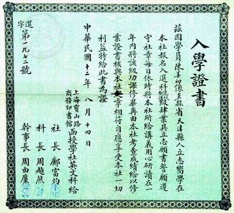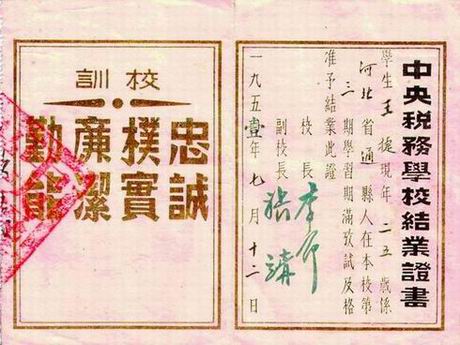 结业证书正文。这所培育国家公务员的学校“忠诚、朴实、廉洁、勤能”的校训在今天依然具有社会意义。