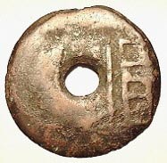 戰國中至末期, 為中國最原始的圓形貨幣之一, 幣身的右側有一個大型的"垣"字篆書, 青銅製, 重約8克。