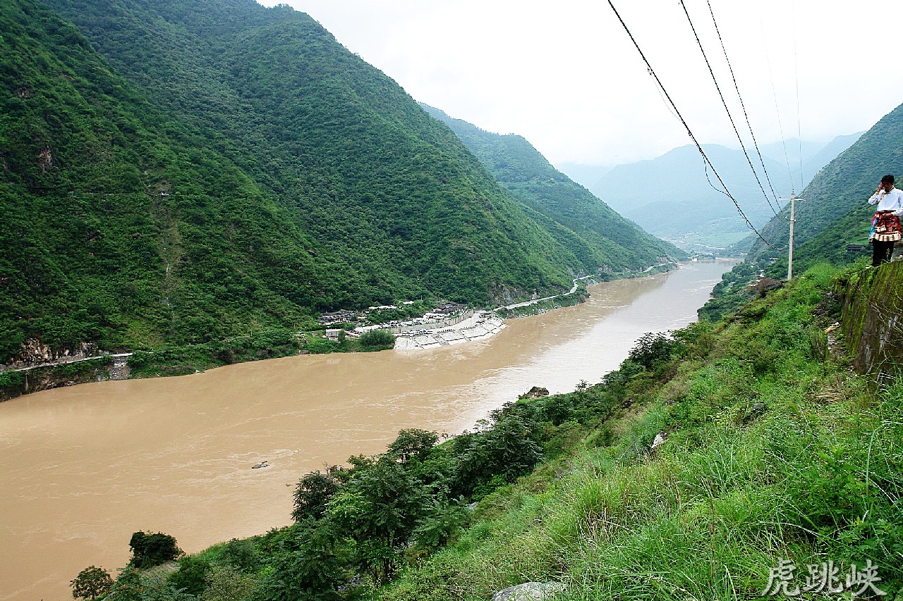 金沙江从石鼓突然急转北流约40公里后,在中甸县桥头镇闯进玉龙雪山和哈巴雪山之间,穿山削岩,劈出了一个世界上最深、最窄、最险的大峡谷——虎跳峡。