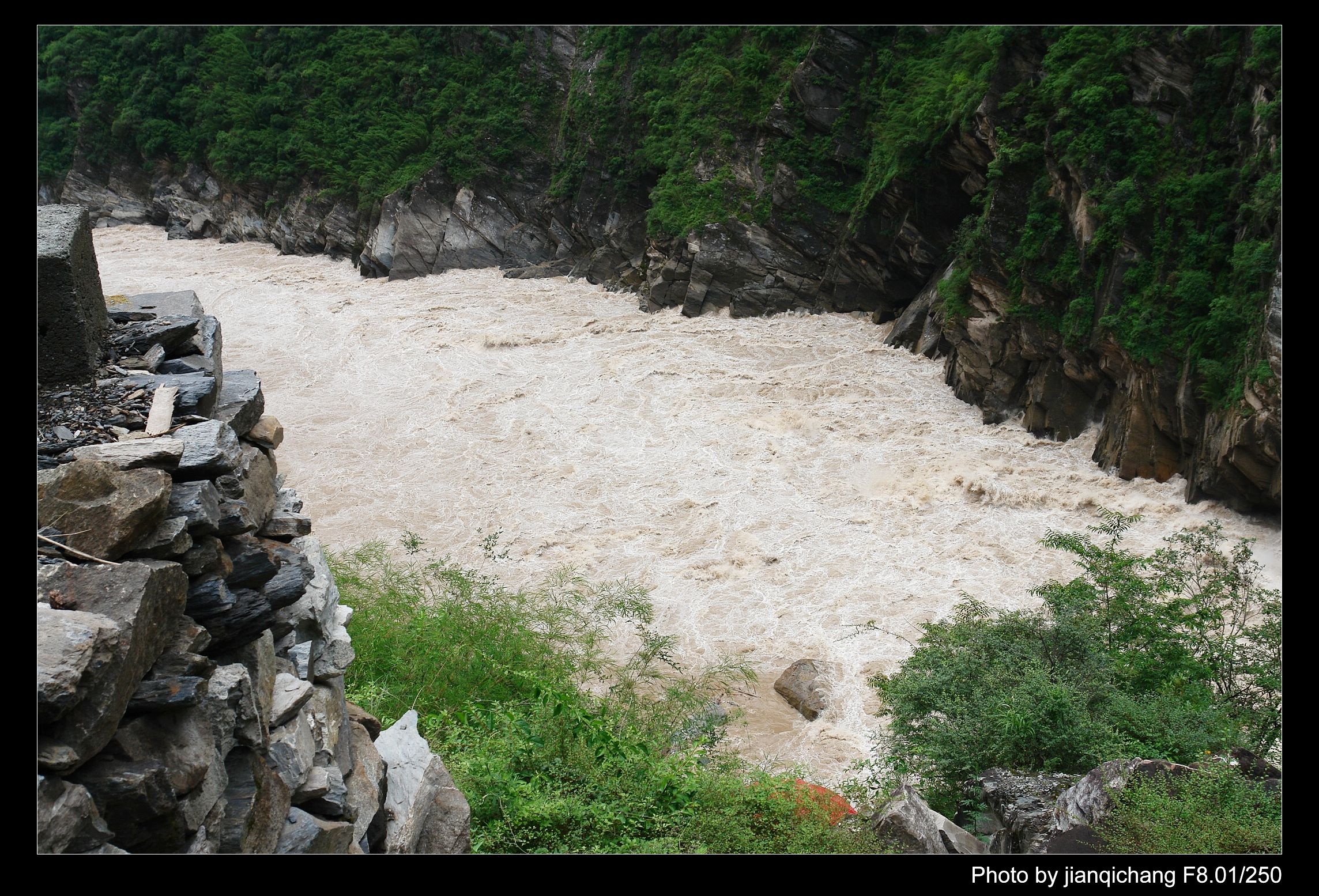 江水在约30公里长的峡谷中,跌落了213米,江面最窄仅30米,金沙江在这里展示了一种不可阻挡的英雄气概。