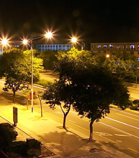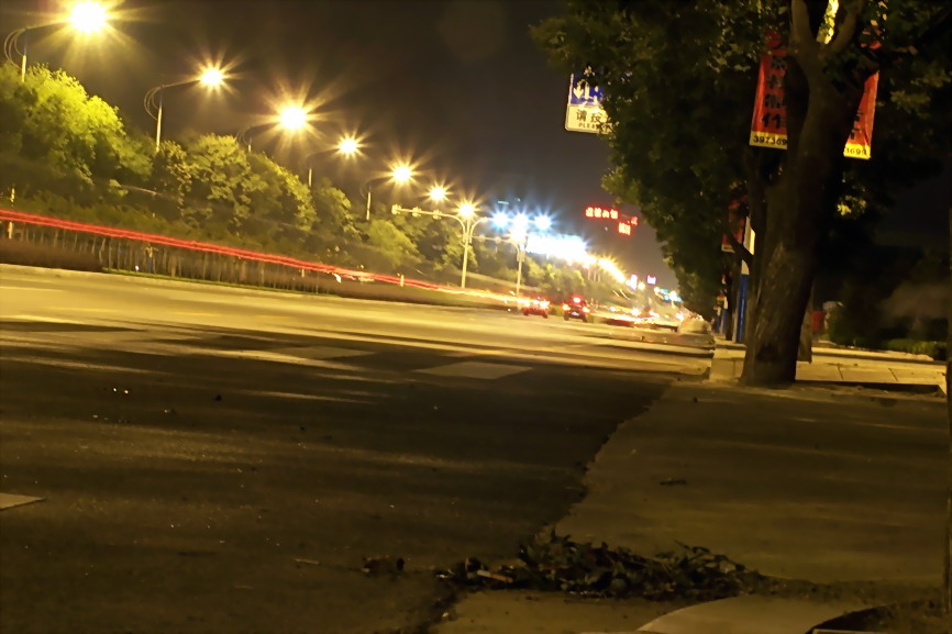 由于不是高速,车子不够多,灯线效果不太明显!不过路灯的星光效果不错!