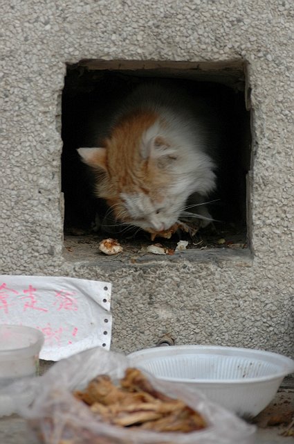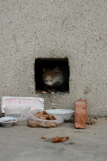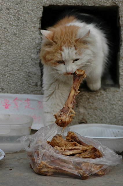 看到了一只流浪猫进餐的幸福时刻