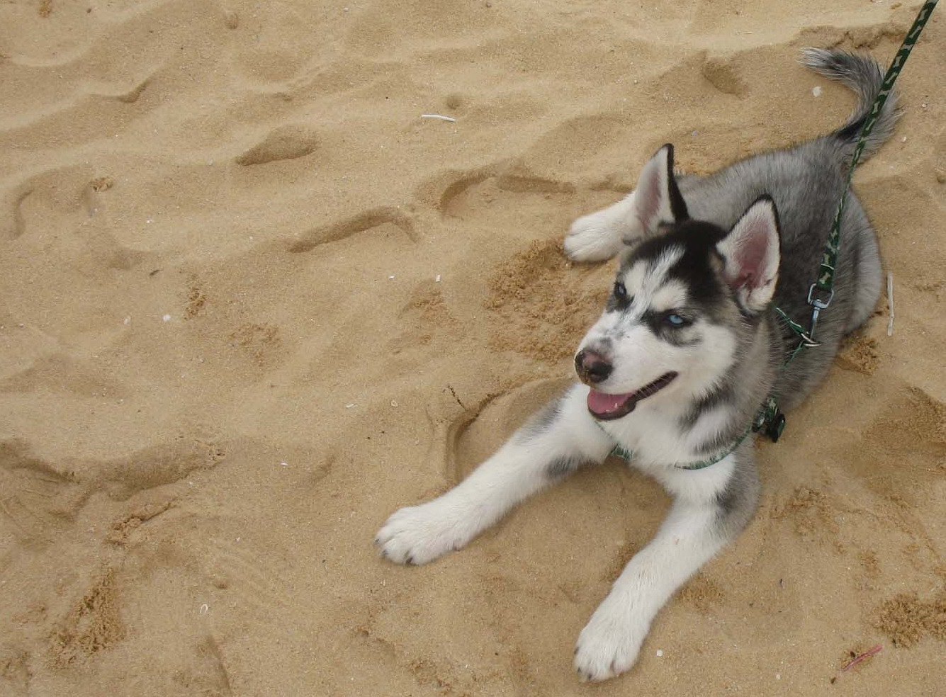 哈士奇?雪撬狗啊,看上去挺凶的...