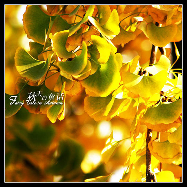 银杏树的叶子在秋天的阳光下,也许是最美的的了~~
