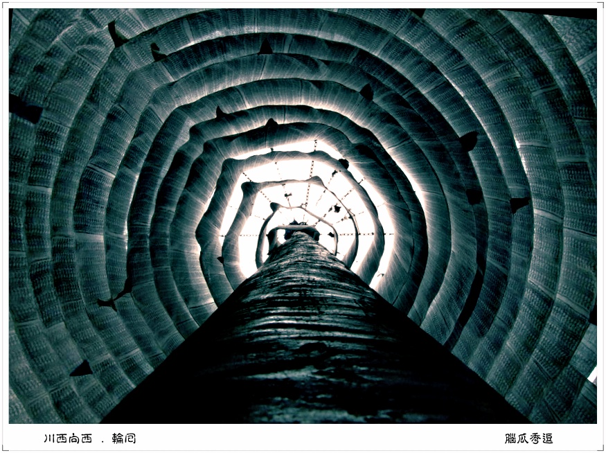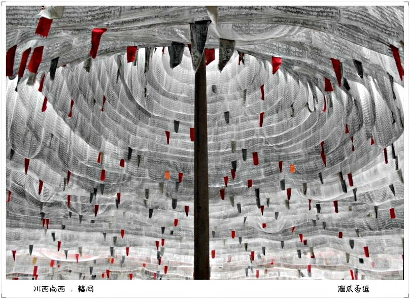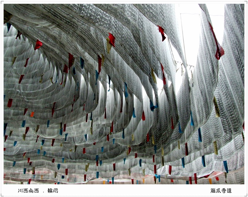 在江边有很多祈幅的经幡.与别处不同它们有围成圈搭建的.从内部看上去很特别.