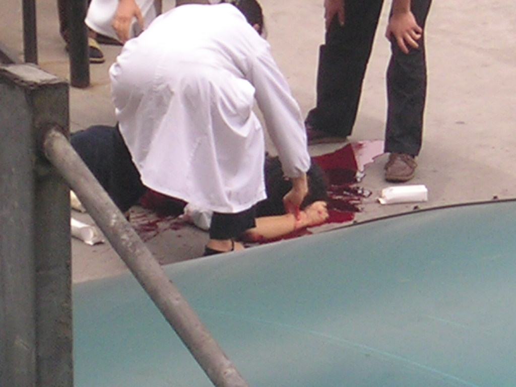 2005年5月14日中午时分,一漂亮女生和同学在食堂2楼吃饭,吃好饭,刚要出食堂门口下楼梯,从楼下冲上来一个男生,手里那着一把刀,边喊着“你为什么要骗我”,“你骗我!!”,到了哪个女生身边,就往她脖子上砍了一刀,接着往胸口上捅了进去,女生从楼梯上滚了下来,这样的场面只有电视上才能看到的啊!! 现场的人都惊呆了,同伴喊救命 ,随后现场一片混乱,食堂里的人都出来了,而哪个男手里拿着那把血淋淋的刀,呆呆的站在那里。等警察来带走! 工大的消息已经封锁了,不过现场很多人都照了照片.