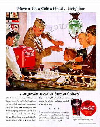 第二次世界大战给可口可乐公司带来了腾飞机遇。1941年12月7日,日本偷袭珍珠港,美国参战。见此形势,可口可乐公司总裁伍德瑞夫立刻宣传:“无论美兵所到何处,可口可乐公司将会在当地以每杯五分钱价格,供应可口可乐。”