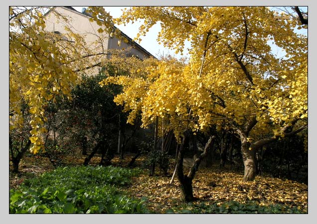 东山人多有种银杏的,苏州人叫白果。原不为观赏,但金秋时节,让人牵挂的却只是它的美了。