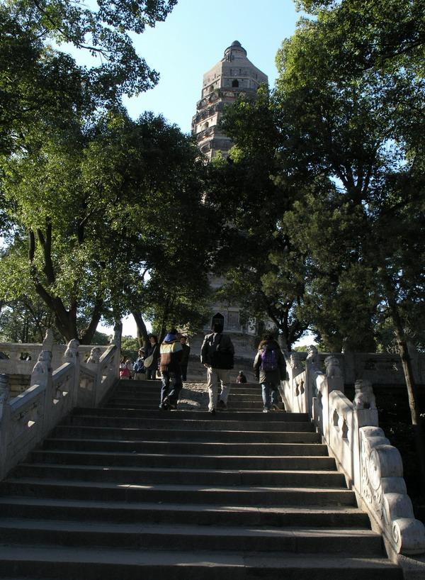 虎丘山,位于苏州城西7公里,海拔34.3米,面积282.3亩。“虎丘”一名来历已近2500年,公元前496年吴王阖闾犯破伤风死,葬于此山,入穴三日后有白虎蹲踞墓上,故名虎丘山。 虎丘山经历代名人在山上营造,规模宏大、日趋完美、亭台楼阁、园榭轩馆,耸金叠翠,虎丘山寺宇均沿山而筑,名冠吴中,甲于江南。虎丘山虽小,而幽美的景色却能与锦绣名山大川相媲美。