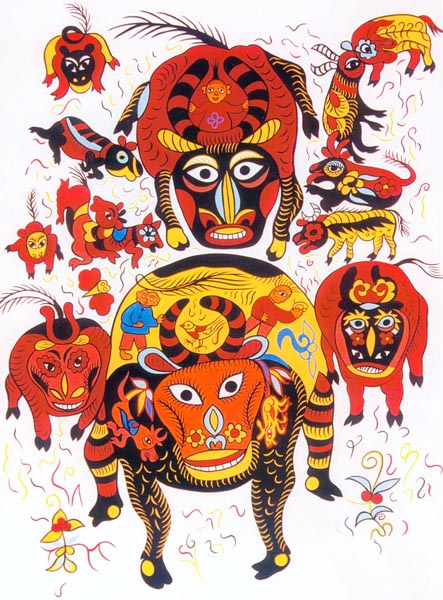 本次民间绘画展览的作者是几位在安塞土生土长的农村老大娘,她们是当地画炕围画,锅围画,墙围花,鸡蛋壳镶嵌画的高手。她们画的画造型单纯、古朴,洋溢着对生活的寄托,对生命的热爱,有着浓郁的安塞的地域特点和很强的艺术震撼力。
