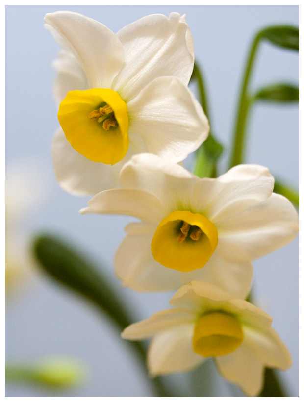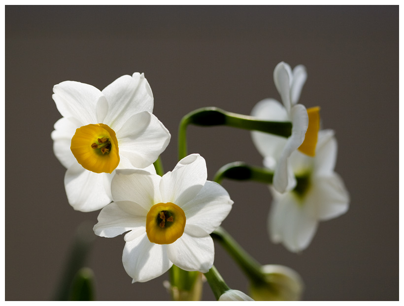 我自个儿种的一盆水仙花在暖冬的阳光下悄悄开放了,于是端着相机猛地一阵咔嚓。