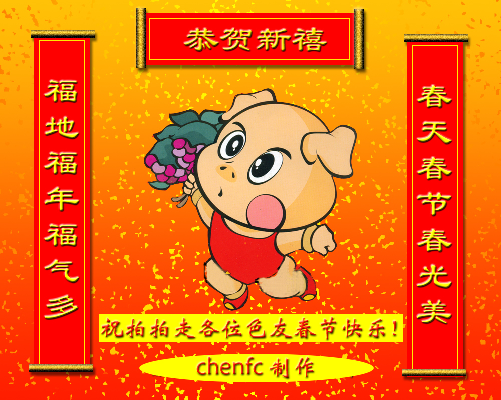 丁亥年春节将至,各位斑竹一年来为大家服务辛苦了!各位色友工作、学习也辛苦了!在下给各位拜年啦!我撰写了一副对联并制作了一张贺卡送给大家。祝各位事事如意,心想事成,多多发财!
