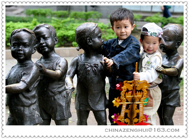 大年初一,在沙面,突然看到了这个镜头,两个孩子往里插队……雕塑和孩子的神态都非常好