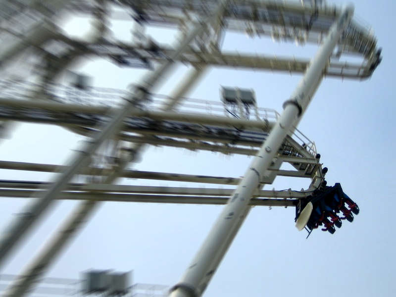 云宵飞车是以100公里速度弹到最高点,和一般的飞车慢慢上最高点恰好相反。