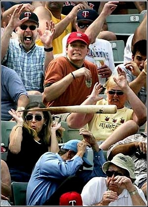 当心:3月14日,美国Florida迈尔斯堡,Minnesota双城队的Michael Restovich击球时不慎扔出的球棒。