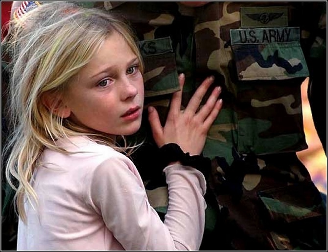 爸爸要走了:2月16日,美国California的安大略,8岁的Christy Sparks在典礼上抱着自己的父亲。她的父亲Thomas Sparks即将赶赴Cuba的关塔那摩湾服役一年