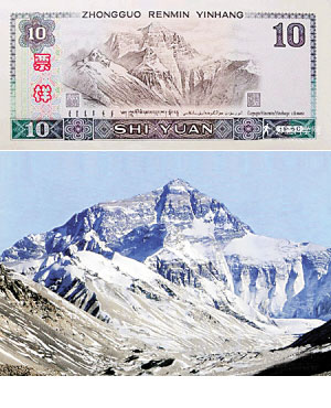 珠穆朗玛峰是世界最高的山峰,海拔8848.13米。它的地位正如它的高度,是永远不能被忽视的。珠穆朗玛峰位于我国和尼泊尔交界的地方,从中国境内眺望珠峰,它像一座金字塔,威严地耸立在一排雪峰之间。这张钱币整体色调以蓝色为主,设计它的时候就考虑到珠峰适合这种冷色调来表现。1989年国家建立珠峰自然保护区。