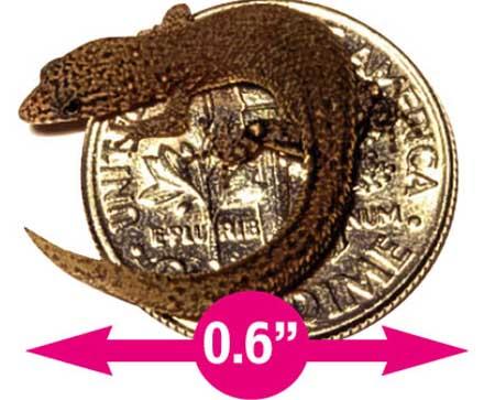 “侏儒壁虎”身长只有0.6英寸(约1.5厘米),而且还是把尾巴算在内的情况下。这种濒于灭绝的动物生活在多米尼加共和国的贾拉古拉国家公园以及伊斯帕尼奥拉南部海岸的比塔岛。