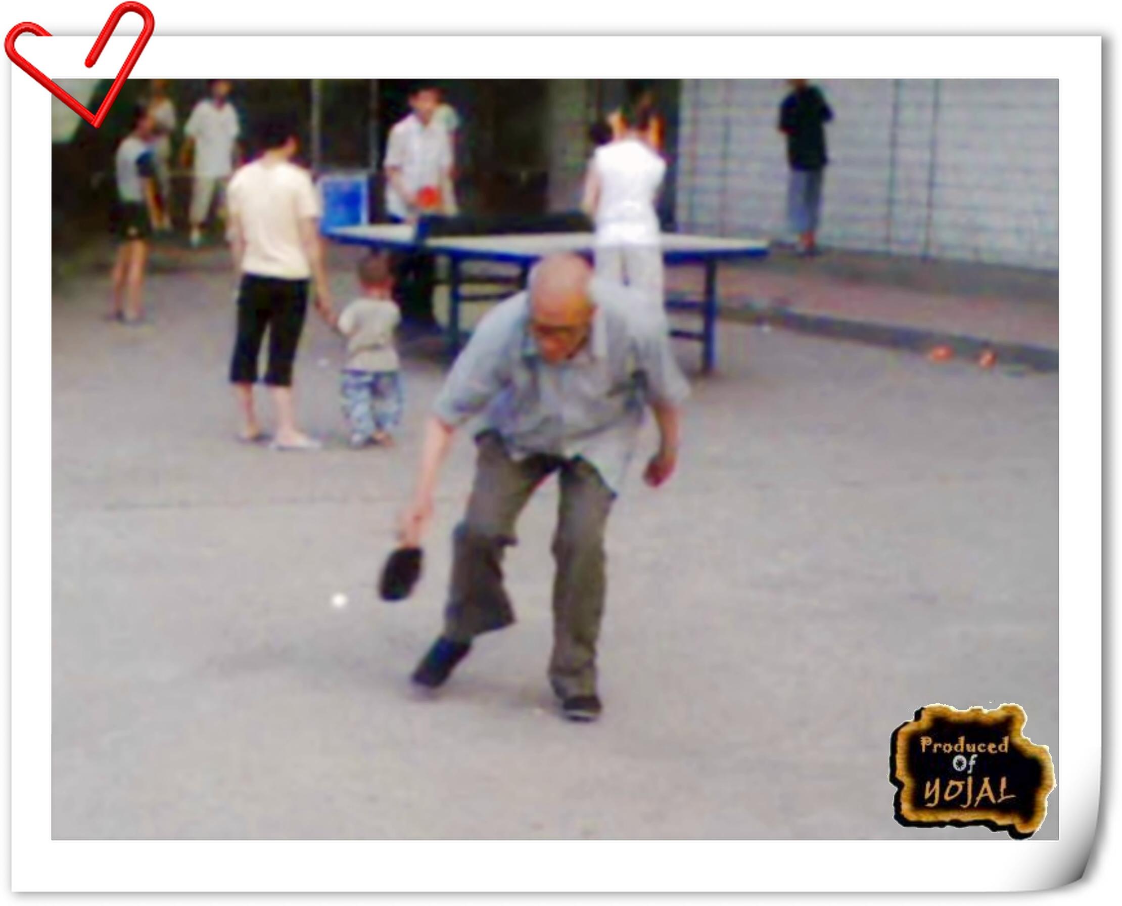 今天从游泳中心出来从球台边走过,看到祖孙两人在乒乓对战。年迈的爷爷面对孙子仍显稚嫩的抽杀已经很难招架,于是他就尽是捡球……