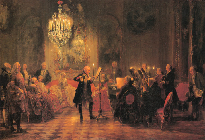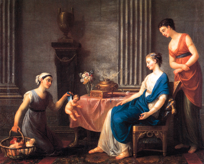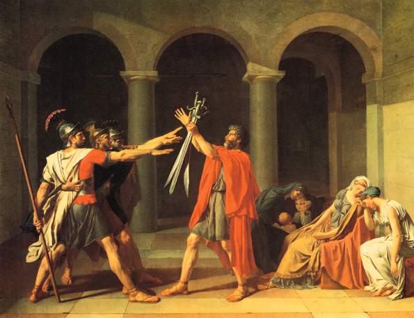 从构图和色彩处理上,都遗留着古典主义原则的严谨性,注重细节的和谐对比,人物、服饰、建筑尤