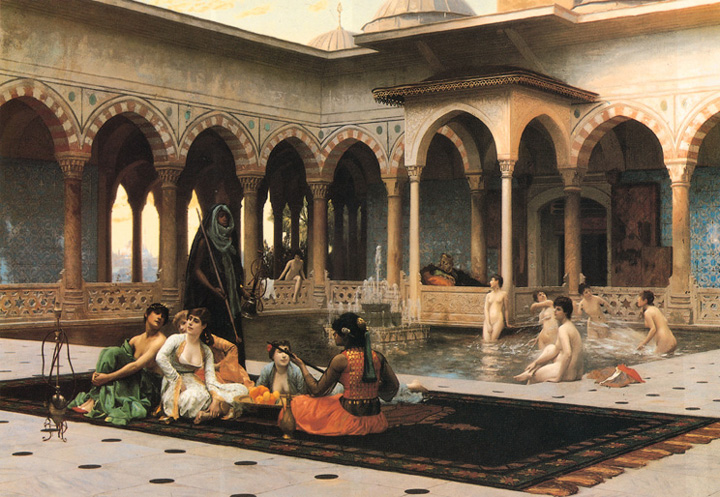国画坛。热罗姆画的这幅《后宫露台》,描绘了阿拉伯王宫最隐秘的后宫生活,描绘了生活于后宫的