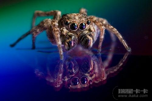 摄影师评论:“趴在DVD上读我的数据的一只跳蛛,用接有佳能MP-E微距镜头的佳能20D数码相机拍到。”
