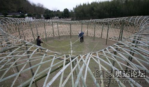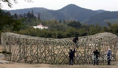 杭州双溪漂流旅游点出现由能工巧匠制作的竹子“鸟巢”。“竹鸟巢”按照二十比一的比例制作,用了近千支毛竹,由十多名师傅用半个月时间编制而成