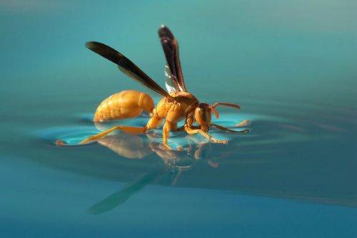 水池上取水的黄胡蜂