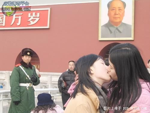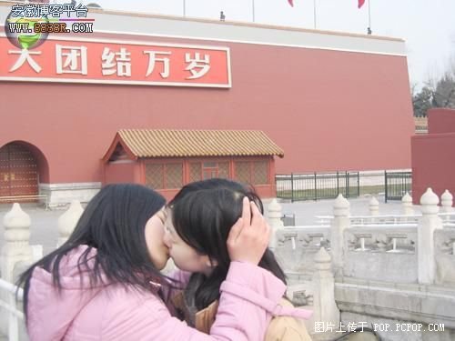 天安门前,两女子当众热吻数十分钟,引起舆论[连图]