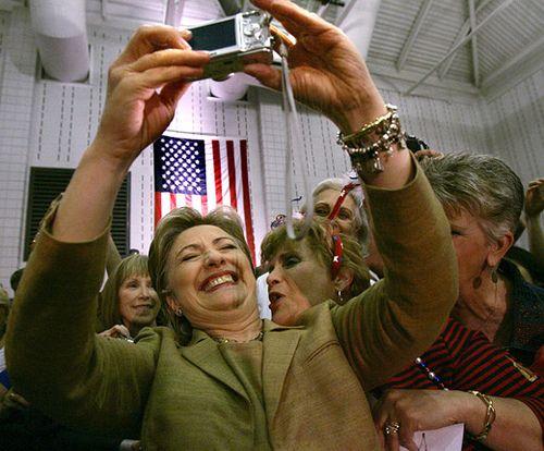 民主党候选人希拉里在北卡罗莱纳州的格林维尔集会时用相机自拍